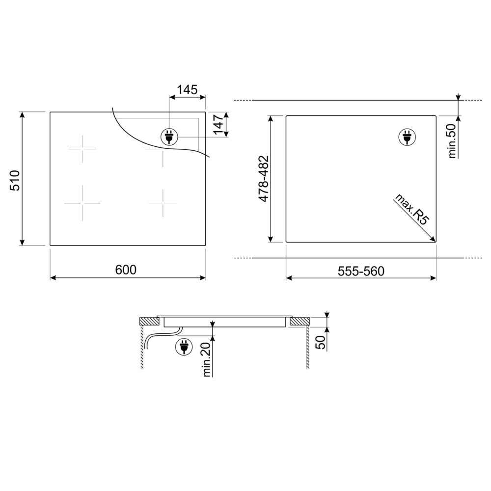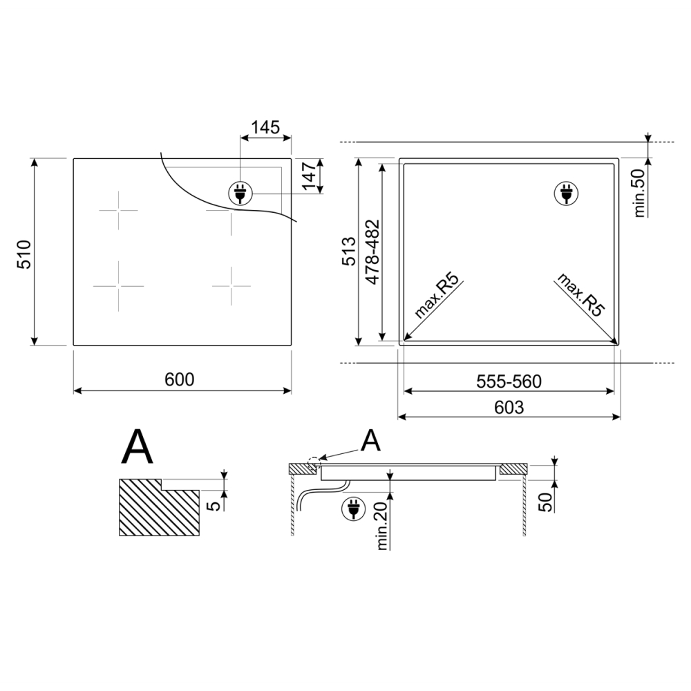 | Kích thước bếp | Ngang 60 cm x Dọc 51 cm x Cao 5,6 cm |