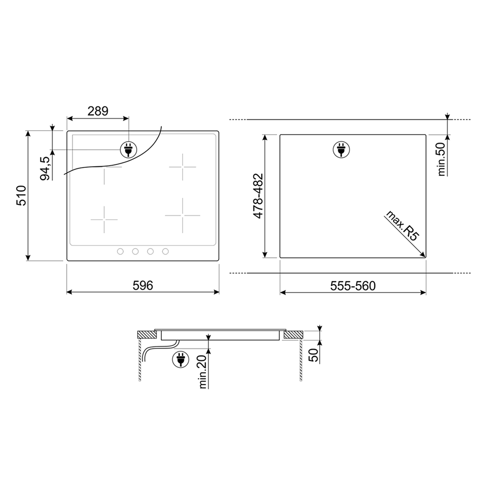 | Kích thước bếp | Ngang 59,6 cm x Dọc 51 cm x Cao 6 cm |