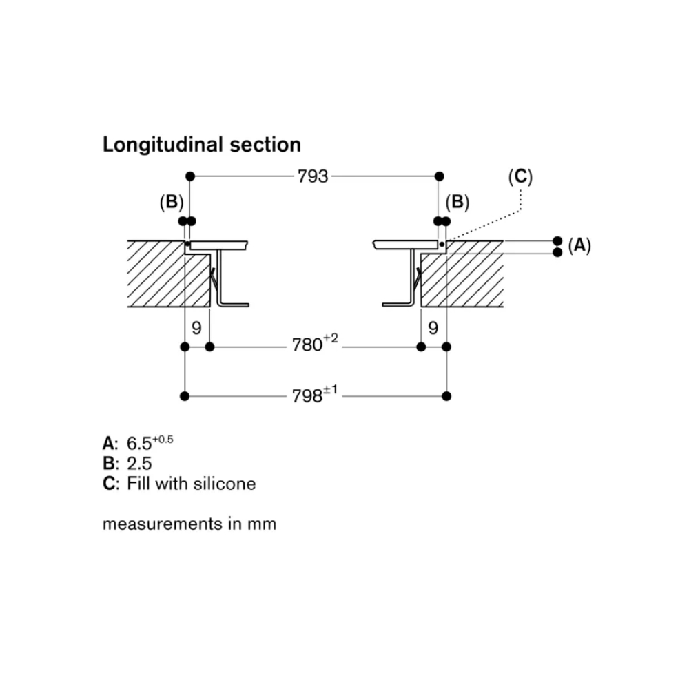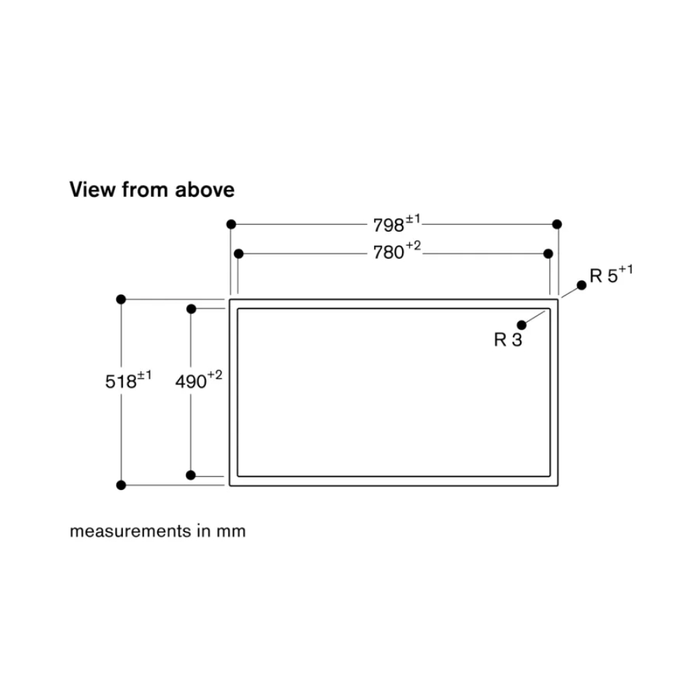 - Lắp âm phẳng: Ngang 79,8 cm x Dọc 51,8 cm x Cao min 8 cm