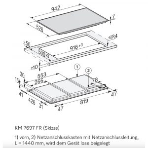 Thông số kỹ thuật và tổng quan bếp từ đa điểm Miele KM 7697 FR 11000 W