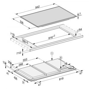 | Kích thước bếp | Ngang 94,2 cm x Dọc 52,6 cm x Cao 5,2 cm |