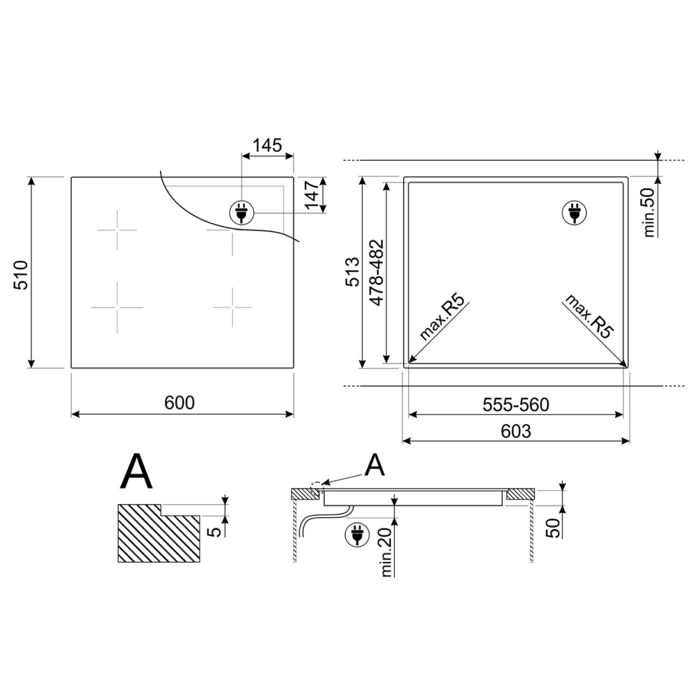 | Kích thước bếp | Ngang 60 cm x Dọc 51 cm x Cao 5,3 cm |