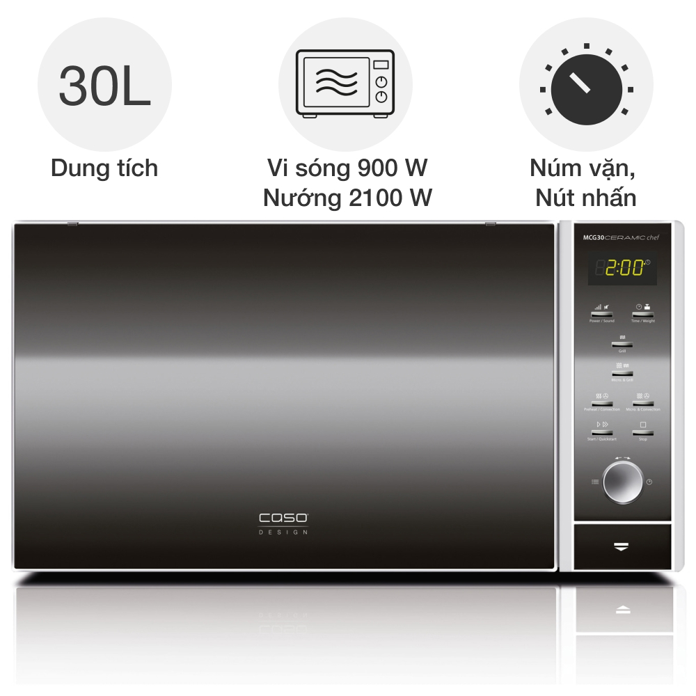 Thông số kĩ thuật và tổng quan về Lò vi sóng kèm nướng Caso MCG30 Ceramic Chef