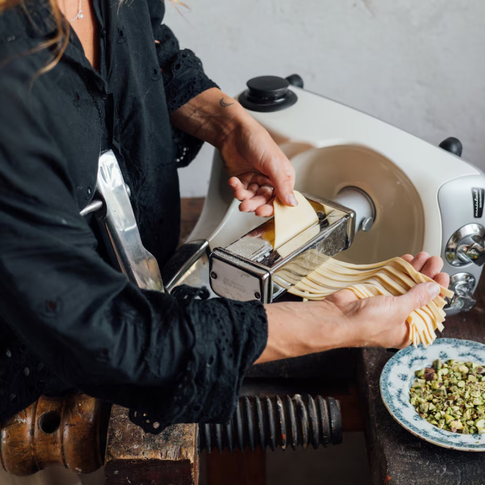 | Bao gồm | – Dụng cụ cán mì Lasagna – Dụng cụ cắt mì Fettuccine |