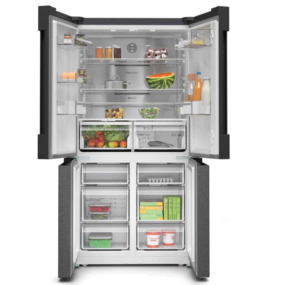 | Tiện ích | – Kết nối và quản lý từ xa thông qua ứng dụng Home Connect – Làm lạnh nhanh Super Cooling – Làm đông nhanh Super freezing – Chế độ tiết kiệm điện năng EcoMode – Cửa tủ phủ lớp chống bám vân tay – Bảng điều khiển bên ngoài – Chế độ nghỉ Rest mode – Ngăn kéo ngăn đông kín và trong suốt tránh lẫn mùi |