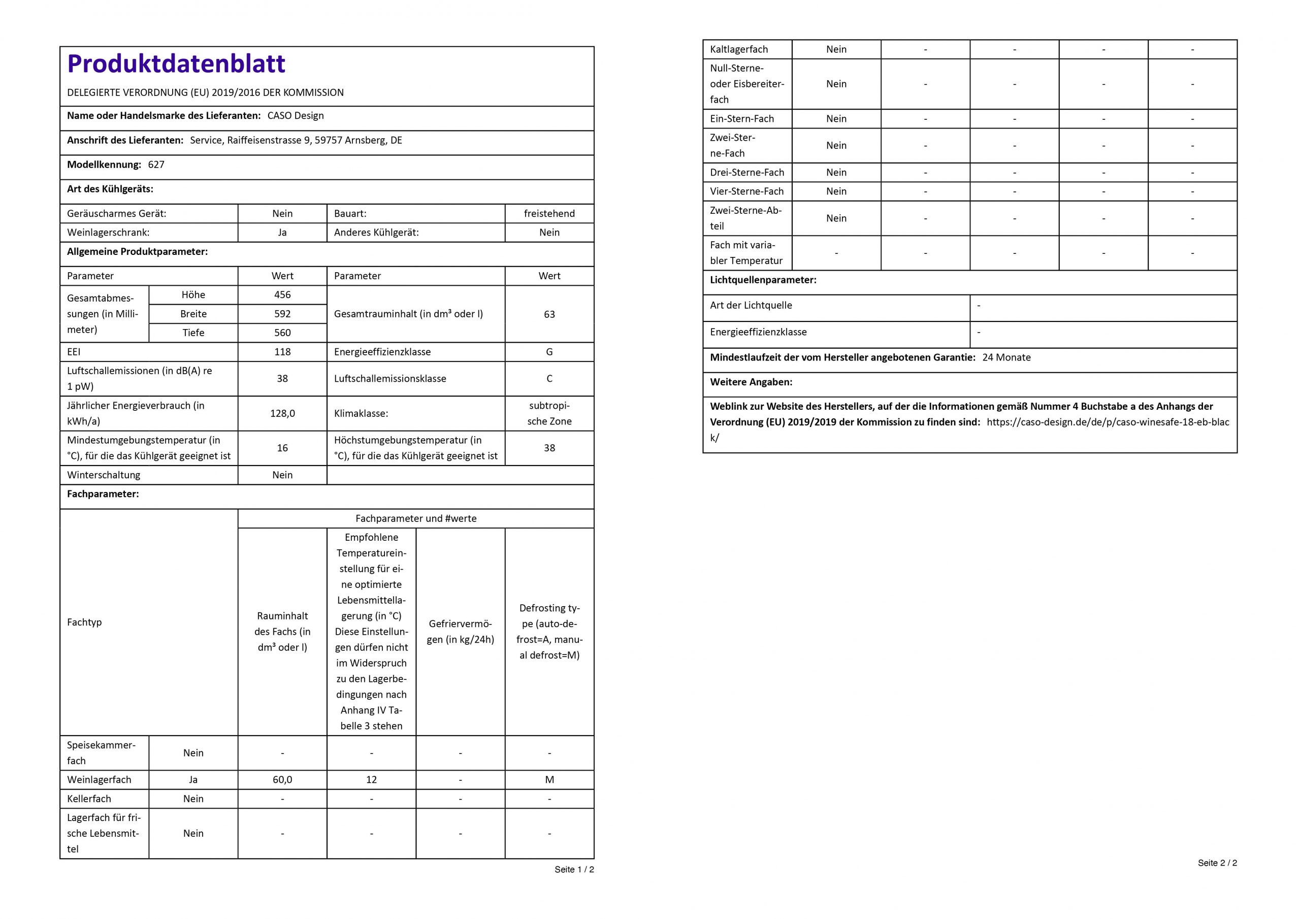 Thông số kĩ thuật và tổng quan của tủ bảo quản rượu vang Caso 627 WineSafe 18 chai âm tủ